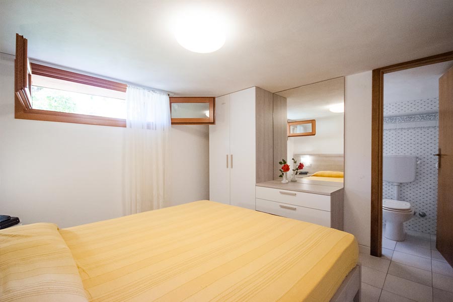 Piccolo appartamento al piano terra composto da soggiorno con angolo cottura e divano letto singolo, una camera matrimoniale, un bagno con doccia e box di cristallo, grande veranda coperta e attrezzata con grill e stendibiancheria.